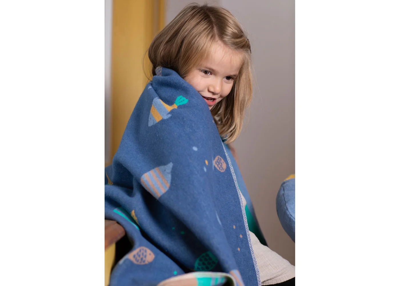 The David Fussenegger Fish Allover Blanket in Blue (100 x 140 cm / 39" x 55") features a playful fish pattern and a soft, lightweight feel. Perfect for keeping kids cozy at home, in the car, or on the go.