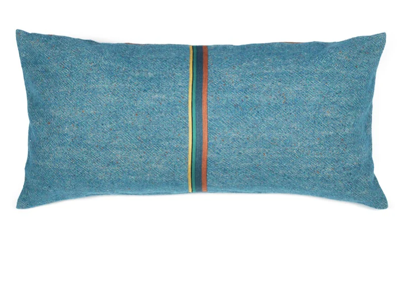 A ‘limited edition’ linen/wool lumbar pillow cover with a gorgeous trim detail running down the center of the pillow. Woven with a tweed yarn in a plain weave construction. 15.7" x 31.5". Insert Sold Separately.