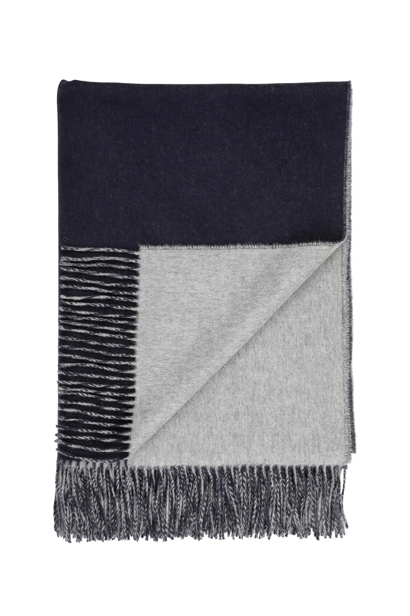 Indulge in refined Scottish luxury with this reversible cashmere throw in Navy and Light Grey. Expertly woven in Scotland from 100% finest cashmere, it offers exceptional softness, timeless elegance. 190 × 140 cm | 74.8 × 55"