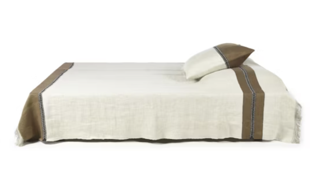 The Libeco Etienne Coverlet (110" x 94") is crafted from 100% linen in a medium-weight weave. Its striped design adds effortless texture and timeless elegance to any bed.