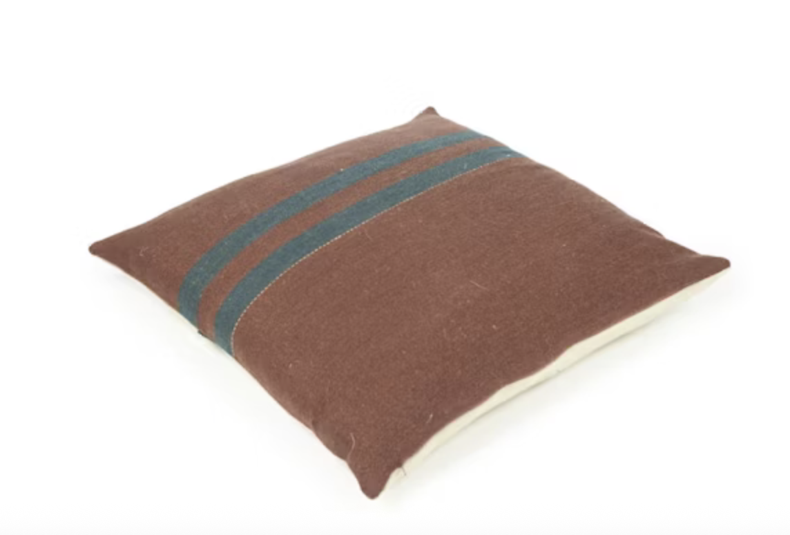 The Juniper Pillow Cover features a merlot-brown base accented with spruce green stripes, creating a warm, inviting look. Made from a soft and durable 70% linen and 30% wool blend, this cushion cover brings cozy seasonal charm. Insert Sold Separately.