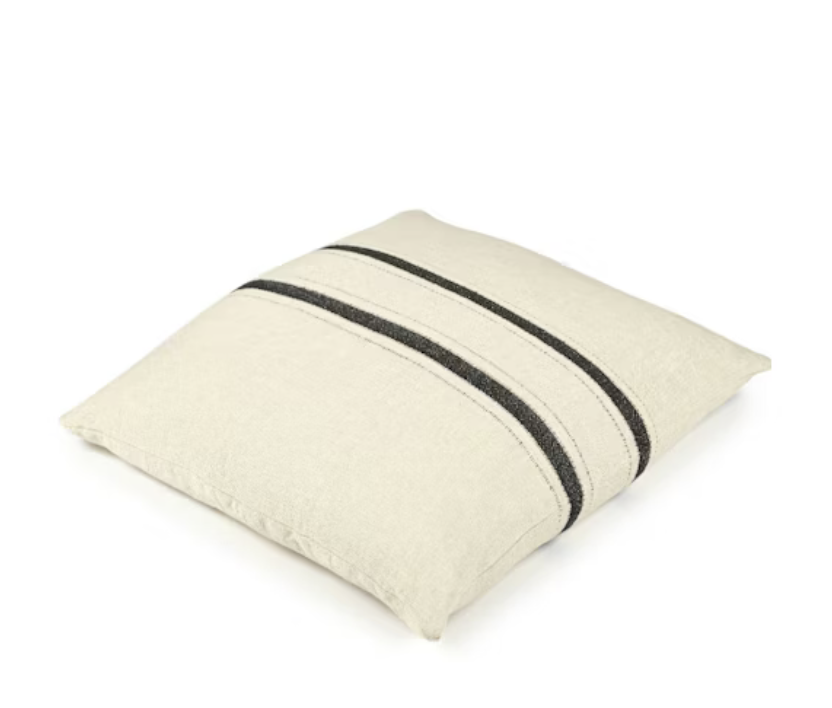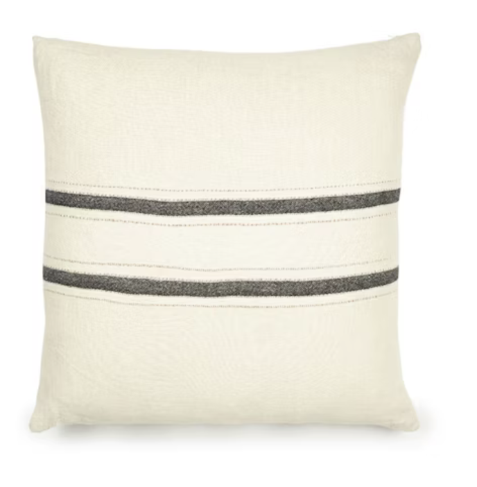 The Libeco Patagonian Multi Stripe Pillow Cover (25" x 25") features black and old rose stripes on an ecru ground for a warm, timeless look. Crafted from premium Belgian linen. Pillow insert sold separately.