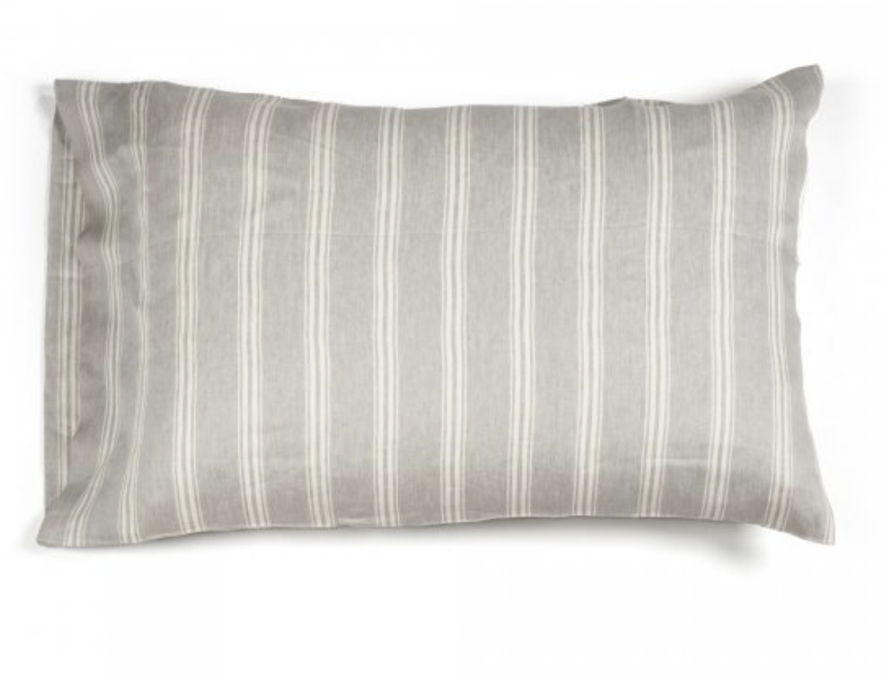 The Libeco Guest House Queen Pillowcase features 1-inch oyster stripes on a light grey twill weave. Made from 100% linen, this medium-weight fabric offers timeless style and lasting comfort.
