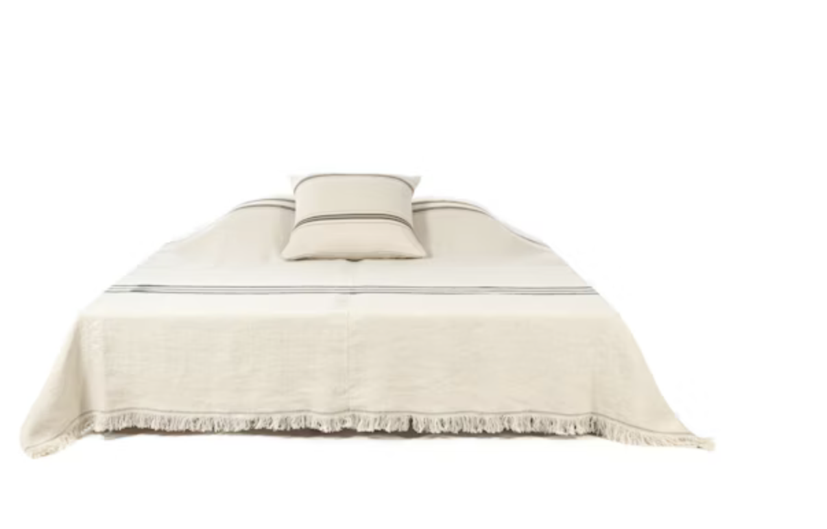 The Libeco Vourkari Coverlet (110" x 94") is crafted from 100% washed Belgian linen for a soft, natural feel. Lightweight, breathable, and beautifully textured, it brings effortless elegance to any bedroom.