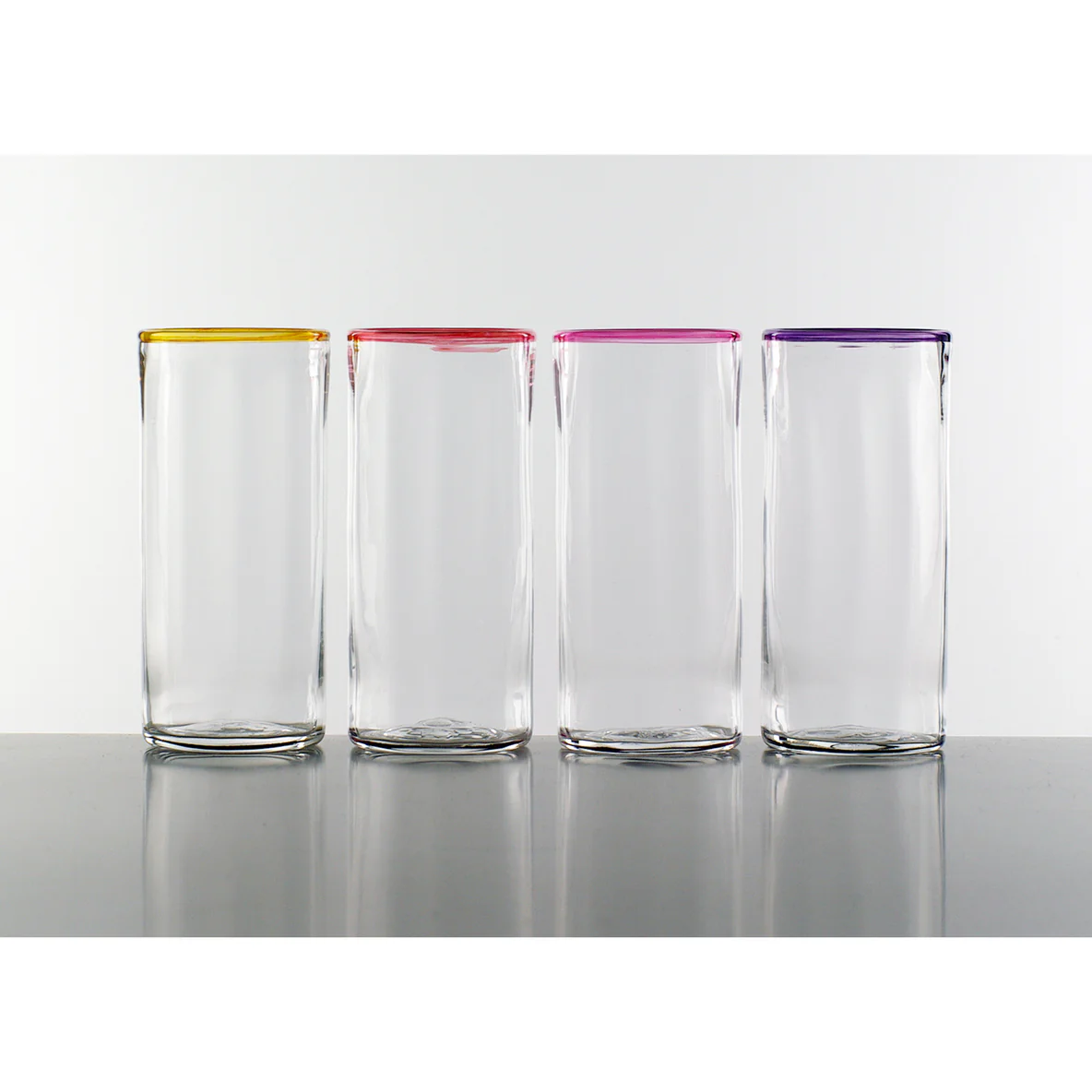 Hand-blown optic tall glass with a warm topaz rim. Beautiful artisan tableware from Lindean Mill Glass—perfect for any iced drink. Approx. 6.1". Sizes are approximate as each piece is handmade. Price is per one glass.