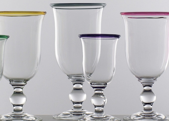 Hand-blown wine glass with a grey-coloured rim. Artisan glassware made in Scotland. Price is for one glass. Elegant for wine or special occasions. Sizes may vary slightly, as each piece is handmade. Price is for one glass.