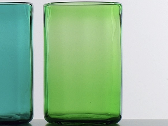 Hand-blown short tumbler in green. Beautiful artisan glassware from Lindean Mill Glass. A pleasure to use for water, wine, or everyday drinks. Handmade pieces may vary slightly in size. Price for one glass.