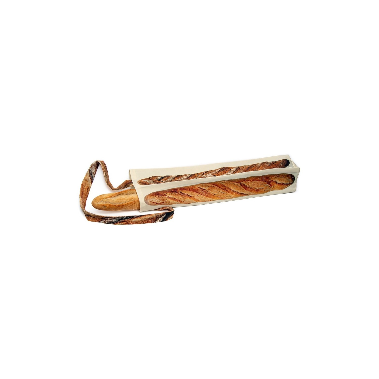 A playful 22" x 4" baguette tote bag made in France from recycled plastic bottles. Printed on all four sides, each side shows a different baguette. It’s eco-friendly, washable, and unmistakably French. Perfect for market runs or as a fun hostess gift.