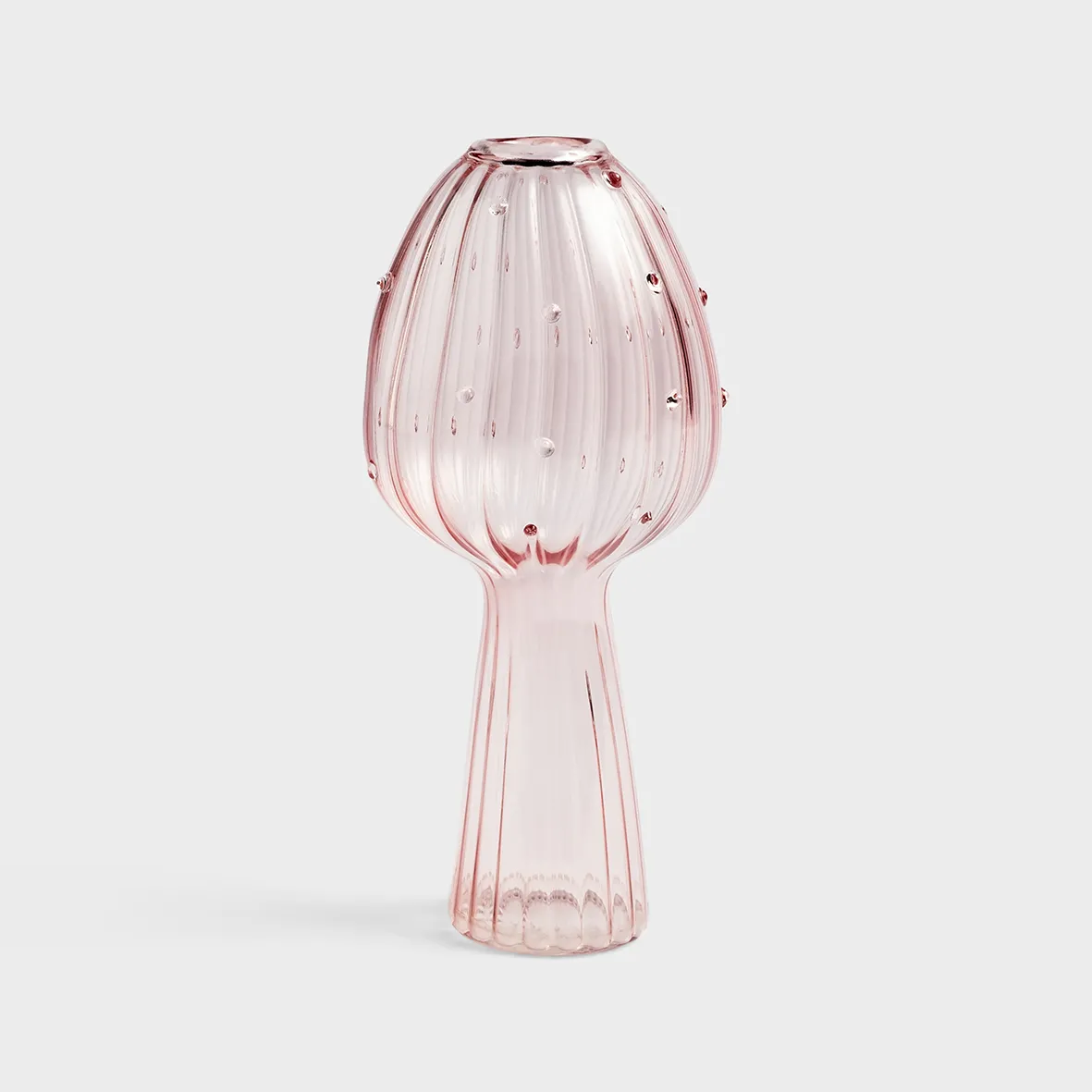 Create your own mini forest with this red mushroom mini vase. Made of glass and perfect for single stems or dried flowers, it adds a whimsical pop of colour to any space. Approx. Size: 6" × 2.5"