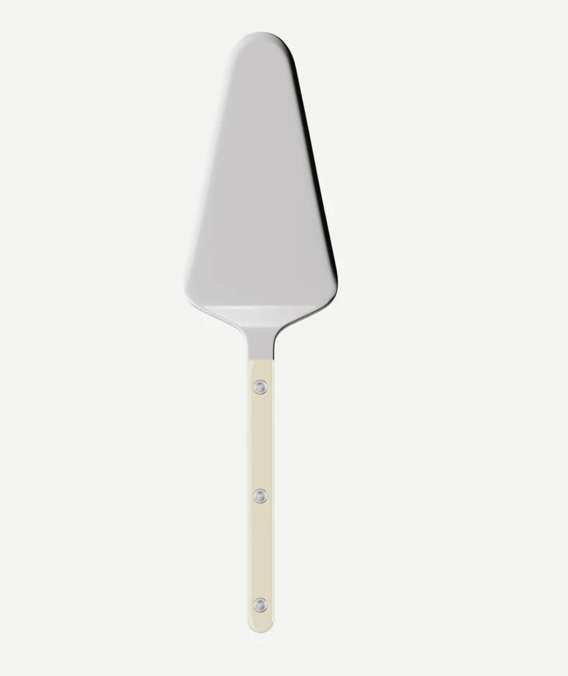 The Sabre Paris Bistro Tart Server in Ivory features durable stainless steel paired with a classic riveted acrylic handle. Made in France, it brings timeless bistro elegance to serving cakes, pies, and tarts.