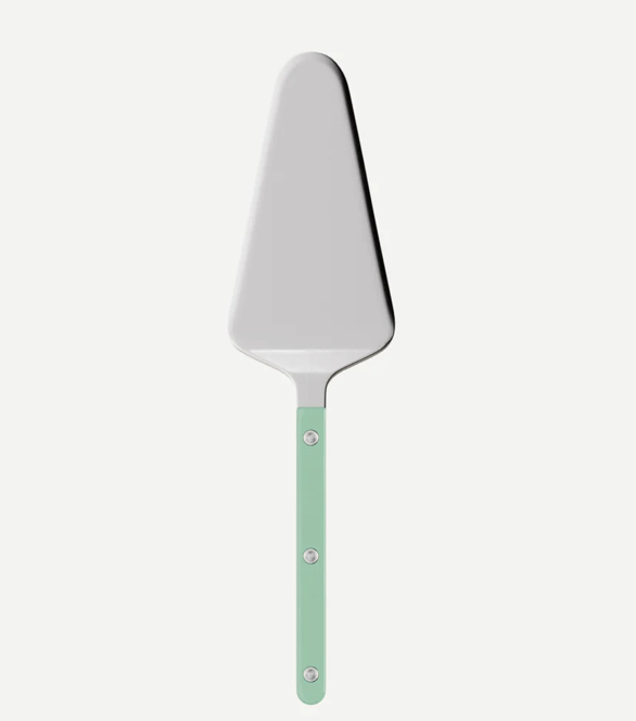 The Sabre Paris Bistro Tart Server in Pastel Green features durable stainless steel and a classic riveted acrylic handle. Made in France, it brings fresh color and timeless bistro charm to serving cakes, pies, and tarts.