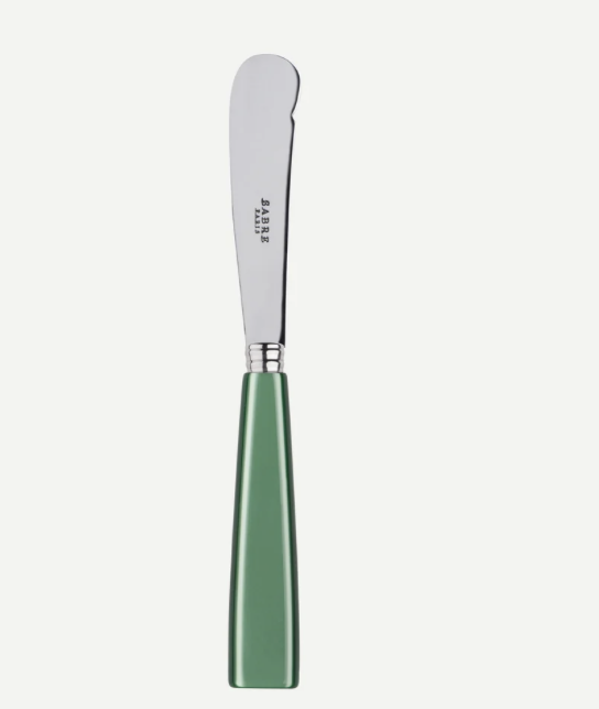 The Sabre Paris Icône Garden Green Butter Knife features a sleek stainless steel blade and a smooth, vibrant acrylic handle. Made in France, it adds a fresh pop of color to everyday spreading.