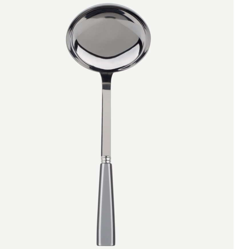 The Sabre Paris Icône Ladle in Grey features a smooth acrylic handle paired with durable stainless steel. Made in France, it adds modern elegance and effortless functionality to serving soups and sauces. Approx. 10 inches