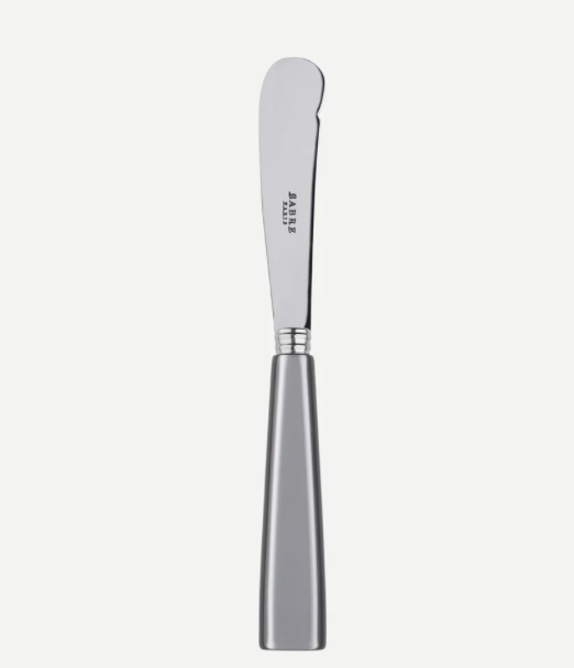 The Sabre Paris Icône Small Butter Knife in Grey features durable stainless steel and a smooth, modern acrylic handle. Made in France, it’s perfect for spreading butter, jams, and soft cheeses with clean, elegant style.
