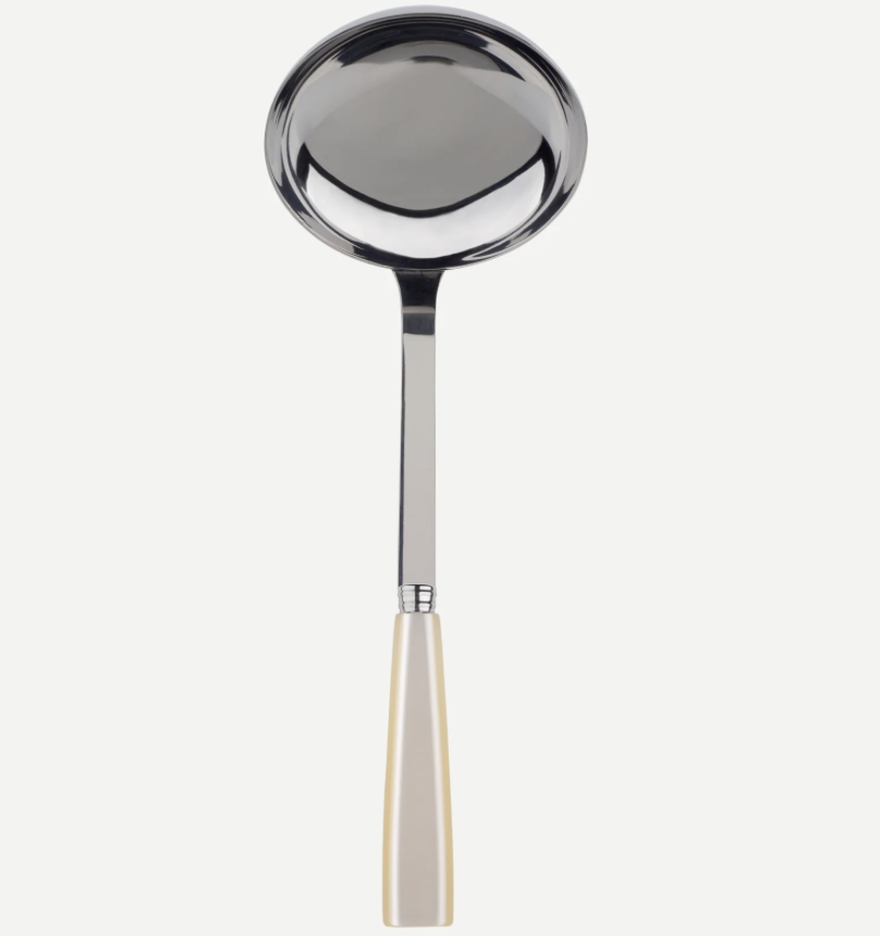 The Sabre Paris Icône Ladle in Pearl combines durable stainless steel with a smooth, elegant pearl-toned acrylic handle. Made in France, it adds refined style and easy functionality to serving soups and sauces. Approx. 10 inches.