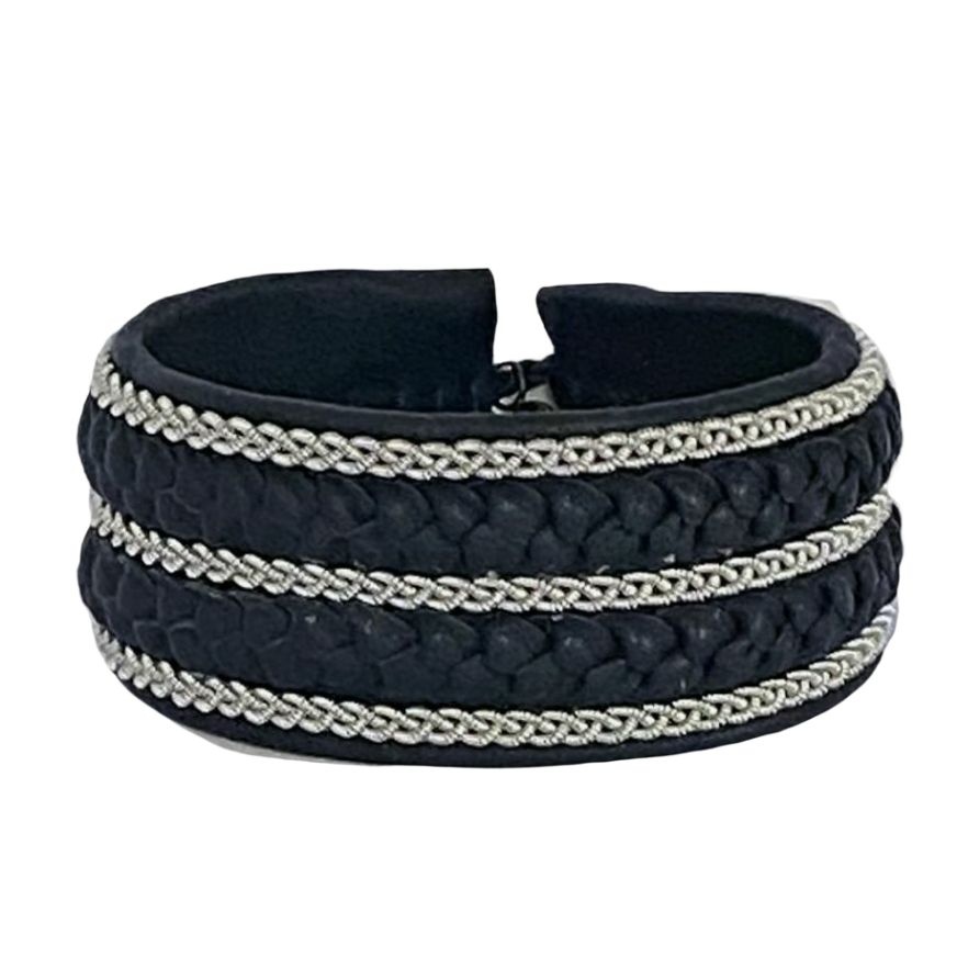 Handcrafted and inspired by the Sami, Northern Scandinavia's indigenous people, Maria Rudman's jewellery breathes stunning new life in traditional designs. Made from Reindeer leather with intricate silver and pewter embroidery, fastened with reindeer horn buttons, their beauty is only enhanced further by age and wear.