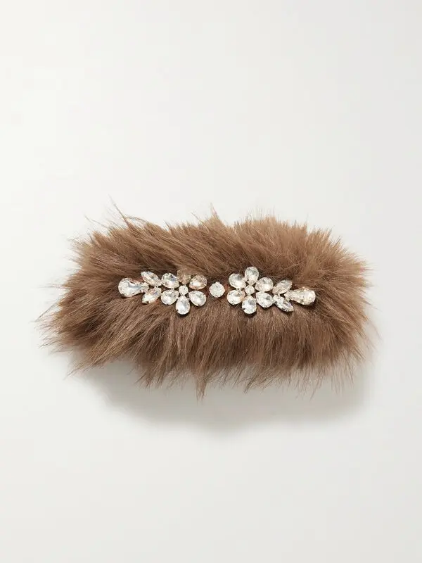 The Fur Brown Clip pairs soft fur texture with a crystal motif, creating a playful yet elegant accent for hair or styling. A standout piece with modern, romantic edge.
